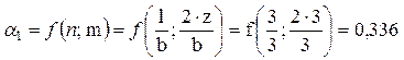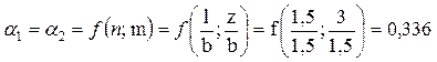 Далее определяем коэффициенты α для большого и малого прямоугольников как функцию значений n и m (прил. Л).