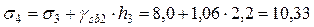 Напряжение на границе между третьим и четвертым слоями грунта определяем как сумму напряжений σ4 и от собственного веса грунта третьего слоя, при этом учитываем взвешивающее действие воды на частицы грунта третьего слоя