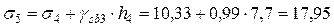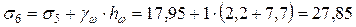 На кровле четвертого слоя напряжение определяем с учетом дополнительного напряжения от столба вышерасположенной воды как сумму напряжений σ5 и от собственного веса столба вышерасположенной воды: