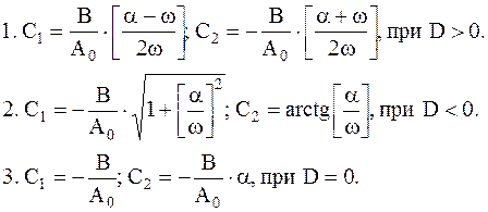 Неизвестные коэффициенты С1 и С2 определяются из условий задачи Коши: