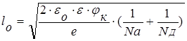 lo - ширина p-n перехода в равновесном состоянии; lпр - ширина p-n перехода при подаче прямого напряжения Uпр.