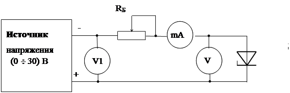 Рис. 16. Схема лабораторной установки для снятия прямой ветви ВАХ электронно-дырочного перехода