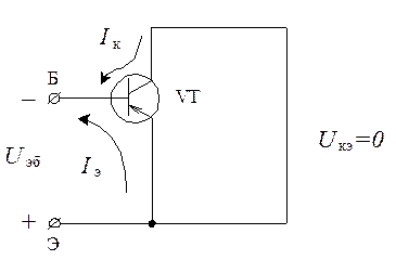 (короткое замыкание коллектора с эмиттером рис.4). В этом случае открывается не только эмиттерный, но и коллекторный переходы, транзистор работает в режиме насыщения и ток базы равен сумме общего тока эмиттера и общего тока коллектора и возрастает более резко при увеличении напряжения