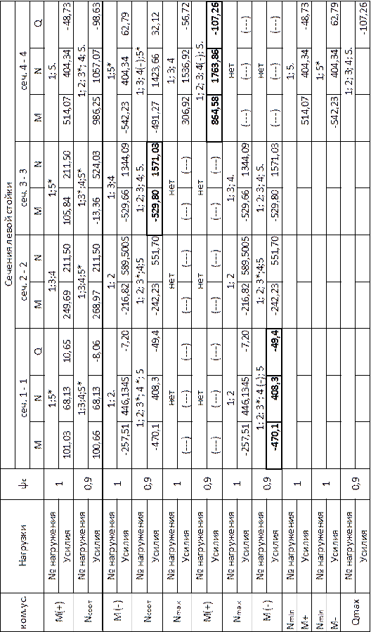 · верхней части – M= -470.1 кН·м; N=408.3 кН (1;2;3-*;4-*;5)