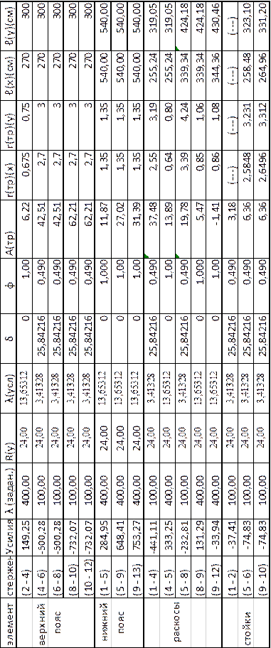 Таблица проверки стержней "из плоскости фермы" (стержни, тавры и уголки)