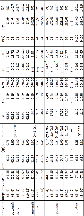 Таблица проверки стержней "в плоскости фермы" (тавры и уголки)