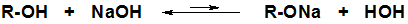 Спирты проявляют слабые кислотные свойства (они значительно слабее воды), поэтому классическая реакция со щелочами полностью сдвинута влево и образование алкоголятов в этих условиях не происходит.