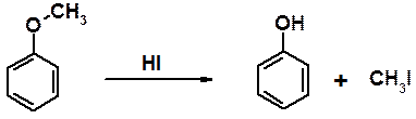 Алкилфениловые эфиры термодинамически очень устойчивы. Только в одном из простых эфиров фенолов – метилфениловом эфире – удается провести расщепление эфирной связи с образованием исходных соединений. Эта реакция часто используется для защиты гидроксигруппы.