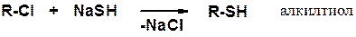 Получение тиолов реакцией алкилгалогенида с гидросульфидом натрия возможно только в присутствии большого избытка NaSH. Если в избытке органическое соединение результат – сульфид.