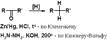 К аналогичному результату приводит восстановление гидразином в сильнощелочной среде при высокой температуре (по Кижнеру-Вольфу).