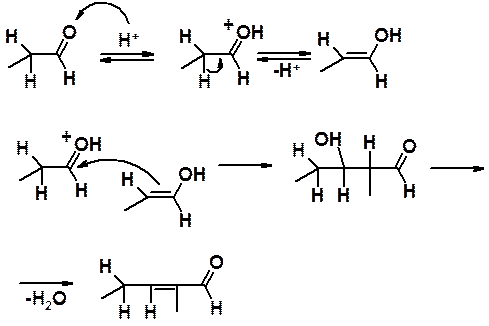 Альдоль может быть выделен из реакционной смеси в свободном виде. Однако реакция может протекать глубже. При незначительном нагревании (около 60о) альдоли легко отщепляют воду, превращаясь в непредельные альдегиды.