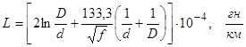 Первое слагаемое (4.12) в квадратных скобках характеризует межпроводную индуктивность, которая не зависит от частоты, а зависит только от отношения наружного и внутреннего диаметров проводов цепи.