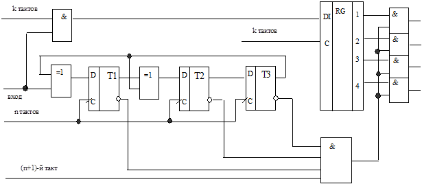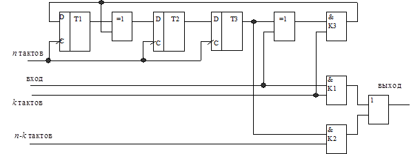 Синтезировать функциональную схему кодера на основе k-разрядного регистра сдвига.