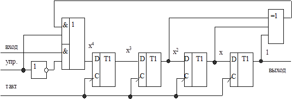 | Проверочный полином . Синтезировать функциональную схему кодера на основе k-разрядного регистра сдвига.