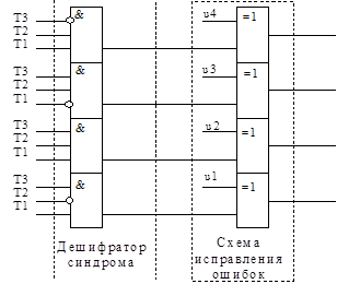 | Рис. 8.4. Дополнение схемы декодера для режима исправления ошибки |