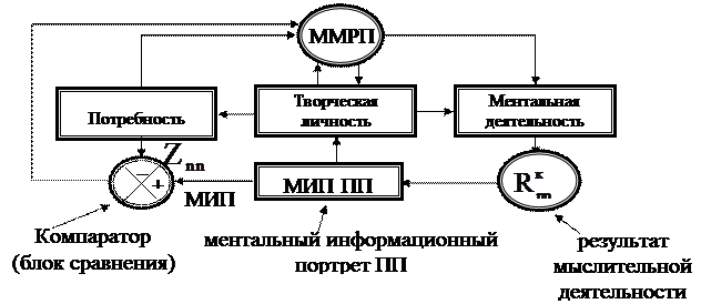 Концептуальная модель реализации творческой потребности (идеальный - ментальный уровень).