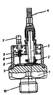 К верхнему слою приварен управляющий электрод. Полученный таким образом узел помещается в капсулу, используемую для охлаждения и защиты кристалла от механических воздействий (Рис.39).