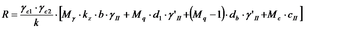 Расчетное сопротивление грунтов основания определяли по формуле: