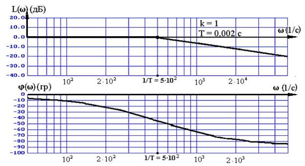 Таким образом, асимптотические логарифмические характеристики идеального инерционного звена представляются выражениями (учитывая единичный коэффициент усиления