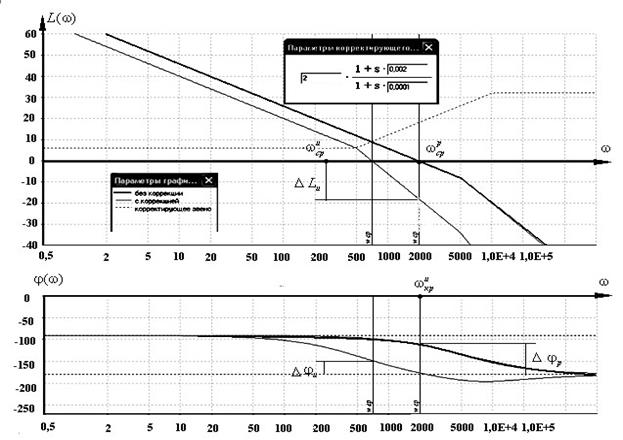 На рис. 2.38 изображены графики ЛАХ для варианта с применением фильтра с запаздыванием по фазе с параметрами