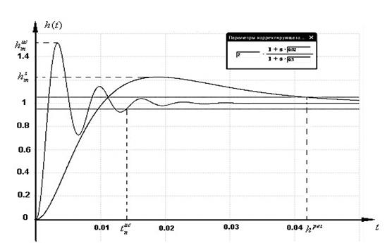 В таблице 7 приведены значения показателей качества исходной и двух вариантов результирующих систем. Параметры ωср, ωкр, ∆L, ∆ϕ, M получены на основе анализа частотных характеристик. Показатели точности γ1, γ2, ∆F – рассчитаны по формулам, перерегулирование σ и время переходного процесса tп получены с использованием программного обеспечения, разработанного на кафедре. Для сравнения в первой строке рассматриваемой таблицы приведены данные технического задания.