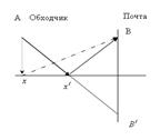 Задача1: Обходчику нужно выйти (из А) на железную дорогу (х) и дойти затем к почте (В) так, чтобы его путь был минимален.