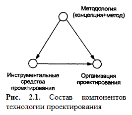 Технология проектирования ЭИС - это совокупность методологии и средств проектирования ЭИС, а также методов и средств организации проектирования (управление процессом создания и модернизации проекта ЭИС) - рис. 2.1.