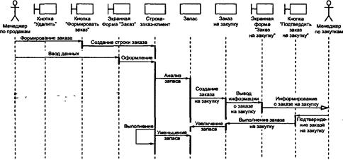 Рис. 13.13. Диаграмма последовательностей для прецедента Выполнение заказа клиент.