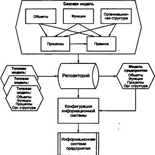 Ядром типовой ЭИС является постоянно развиваемая модель проблемной области (предприятия), поддерживаемая в специальной базе метаинформации - репозитории, на основе которого осуществляется конфигурация программного обеспечения. Таким образом, проектирование и адаптация ЭИС сводятся прежде всего к построению модели проблемной области и ее периодической корректировке.