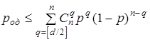 Здесь pn,q – вероятность того, что при передаче по дискретному каналу в кодовой комбинации двоичного кода с разрядностью n возникнет ошибка кратности q.