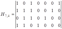 Тогда для рассматриваемого циклического кода с образующим полиномом g(x)=x3+x+1 проверочная матрица будет выглядеть следующим образом
