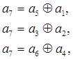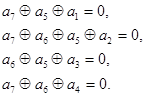 Суммируя по модулю два второе и третье уравнения и разрешая полученные три уравнения относительно а7, получаем систему