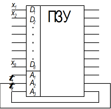 Данная микросхема легко программируется на основе канонических уравнений комбинационной схемы структурного автомата.