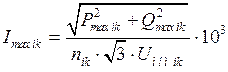 2. Определяются токи Imax ik на участках рассматриваемой сети, А: