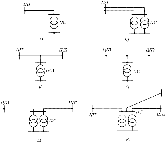 Рис. 2.8. Основные типы присоединения подстанций к сети