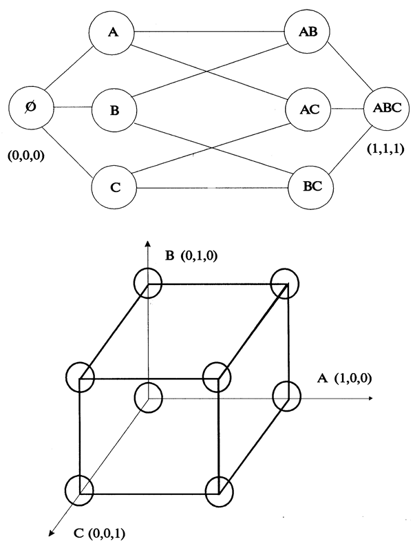 {{(A;B;C)}} Û {(0,0,0);(0,0,1)…(1,1,1)}. (1.4)