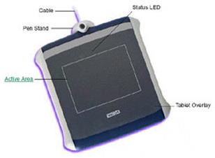 d) It lets you interact with computer. You move pressure-stylus across the surface of a tablet and create graphics.