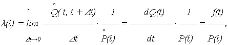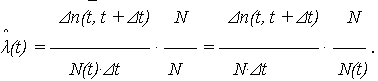 t] к произведению числа N(t) работоспособных объектов в момент t на длительность интервала наработки