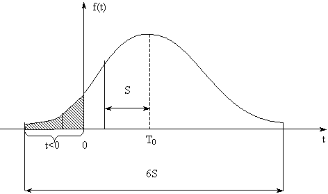 При малых значениях Т0 и большом S, может возникать ситуация, когда ПРО f(t) «покрывает» своей левой ветвью область отрицательных наработок (рис. 4).
