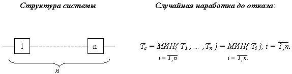 Таким образом, при экспоненциальной наработке до отказа каждого из n элементов, распределение наработки до отказа ОС также подчиняется экспоненциальному распределению.