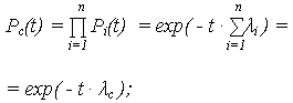 При экспоненциальном распределении наработки до отказа каждого из n элементов ОС Pi(t) = exp( -