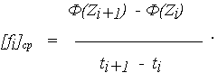 Для нормально распределенной случайной функции Х(t) при построении гистограммы средних значений [fi]ср достаточно знать лишь ее числовые характеристики mx(t) и Sx(t), по которым находятся значения Sx , Sxi, mxi, mx, соответствующие началу ti и концу ti+1 каждого из интервалов ti, необходимые для определения аргументов функции Лапласа: