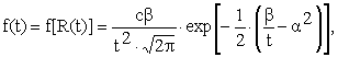 Плотность распределения f[R(t)] по (36) соответствует рассмотренному ранее альфа-распределению, параметры которого по аналогии с (16), (17) следующие: