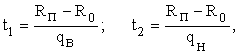 являются границами изменения времени T = {t} выхода РОП за значение Rп при возможных пределах изменения скорости Q.