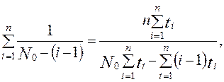 и каждый раз в эти моменты обнаруживается и достоверно устраняется одна ошибка, то, используя метод максимального правдоподобия, можно получить уравнение для определения значения начального числа ошибок