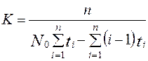 - наблюдение за поведением программы в определённый временной период. Тогда величину среднего времени между отказами (сбоями) ПО можно определить так: