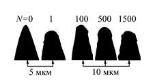 | Рис.3.3 Изменение профиля вершины эмиттера с числом включений |