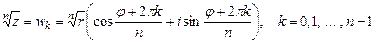 Извлечение корня -й степени из комплексного числа проводится по формуле Муавра-Лапласа