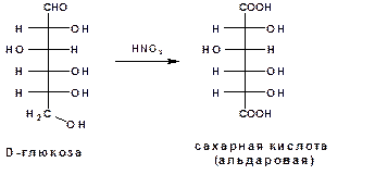При окислении более жестким окислителем, например, азотной кислотой, образуются сахарные (альдаровая )кислоты: