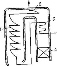 В прямоточном парогенераторе барабана нет. Циркуляция воды и пара создается насосами (рис. 3.). Вода через водоподогреватель 3 поступает в трубы /, расположенные в топке, превращается в пар, который затем подается в пароперегреватель 2 идалее в турбину. В воздухоподогревателе 4 происходит подогрев воздуха перед подачей его в топку. Прямоточные парогенераторы требуют чувствительного и точного регулирования подачи воды. Кроме того, к питательной воде, используемой в парогенераторах этого типа, предъявляют очень высокие требования в отношении ее качества.